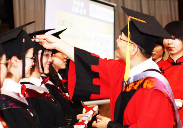 赵桂仿教授作为教师代表对员工的毕业表示祝贺。他通过讲述自己的求学经历叮嘱同学们珍惜今天的生活,希望同学们创造条件,努力奋斗,“今天你以母校为荣,明天母校以你为荣”,母校任何时候都是大家的坚强后盾。