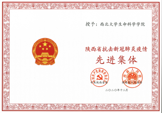 近日,中共陕西省委、陕西省人民政府为获“陕西省抗击新冠肺炎疫情先进集体”“陕西省抗击新冠肺炎疫情先进个人”称号的集体和个人颁授了获奖证书和奖牌,学院获“陕西省抗击新冠肺炎疫情先进集体”称号,为全省唯一获此殊荣的高校二级学院。