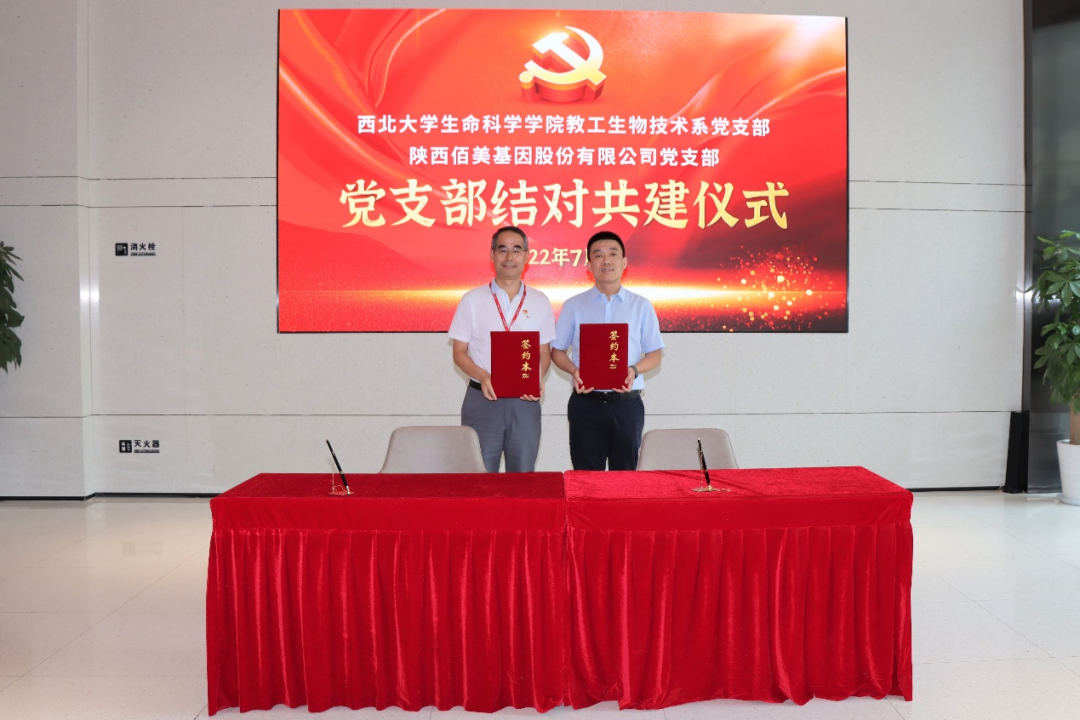 在基层党组织结对共建仪式上,佰美基因党支部与威廉williamhill体育教工生物技术系党支部签署结对共建协议,双方将通过相互交流,相互学习,相互督促等多种方式,进一步落实习近平总书记关于科技工作“四个面向”的要求,培养生命科学人才不断成长,培育原创成果持续涌现,促进科技成果持续转化。