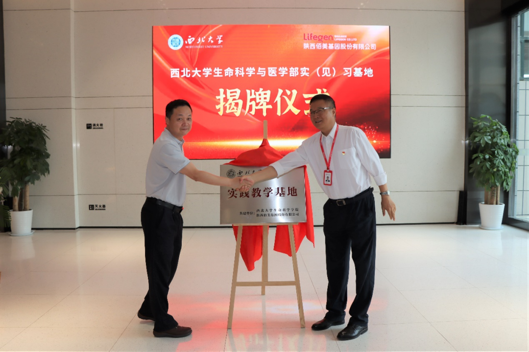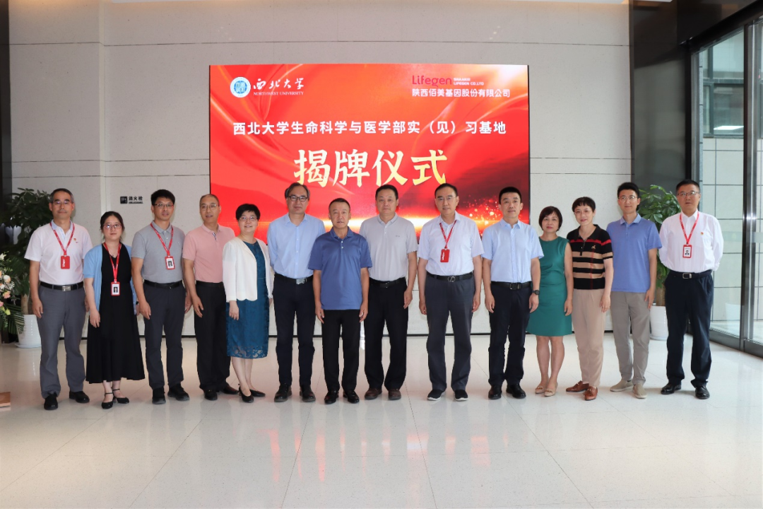 7月1日,西北老员工命科学与医学部 佰美基因实践教学基地揭牌暨基层党组织结对共建仪式在陕西佰美基因股份有限公司隆重举行。威廉williamhill体育党委常委、副董事长、威廉williamhill体育主任陈富林出席,医公司党支部(直属)书记张宇、威廉希尔经理付爱根、副经理张亚妮、经理助理余源、生物技术系系主任朱宏莉、生物技术系教授戴鹏高、西安区域医学检验中心首席科学家郝晓柯、董事长李莉、佰美基因总裁张永生、西安区域医学检验中心总经理曾宪飞及员工代表60余人参加仪式。