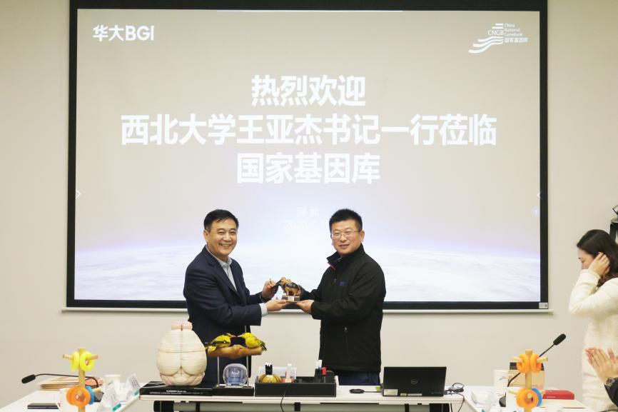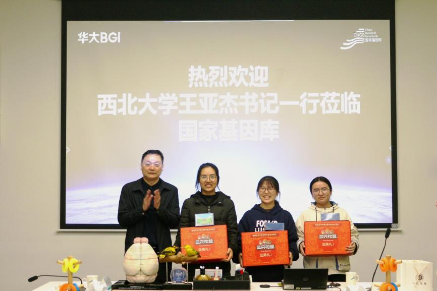 座谈会后,王亚杰与华大互相赠送了礼物,吴振磊为在华大基因工作的92级员工杨爽,10级员工闫承彬、蒙俊烨、余楠,18级员工姜琳赠送校庆纪念品,向员工对母校的关心和支持表示感谢。陈富林为第二届华大创新班员工代表赠送新年礼物,鼓励员工充分利用联合培养的新机制、新平台,学习真本领,练好基本功。